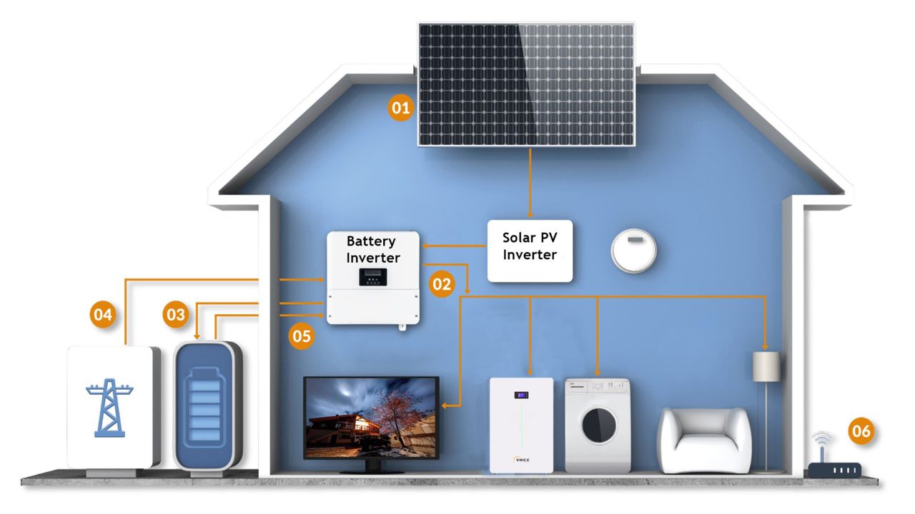 The inverter converts DC electricity into alternating current (AC), which powers your home or business.